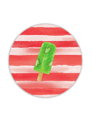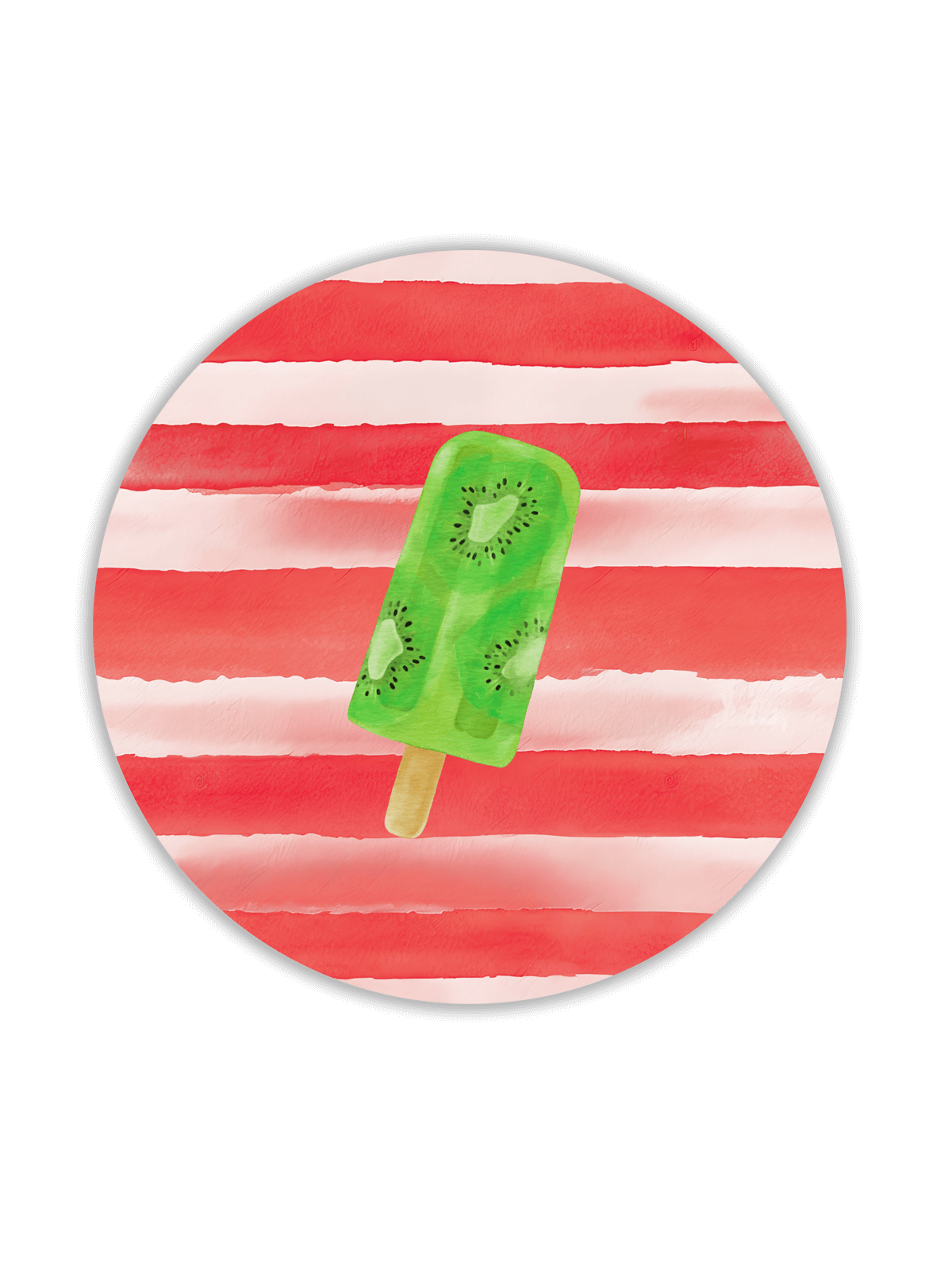 La grafica raffigura un ghiacciolo colorato su fondo azzurro, in uno stile illustrato vivace e frizzante. Il risultato è un accessorio dal look pop, perfetto per chi ama osare con ironia e colore, trasformando ogni pasto in un momento allegro e informale.