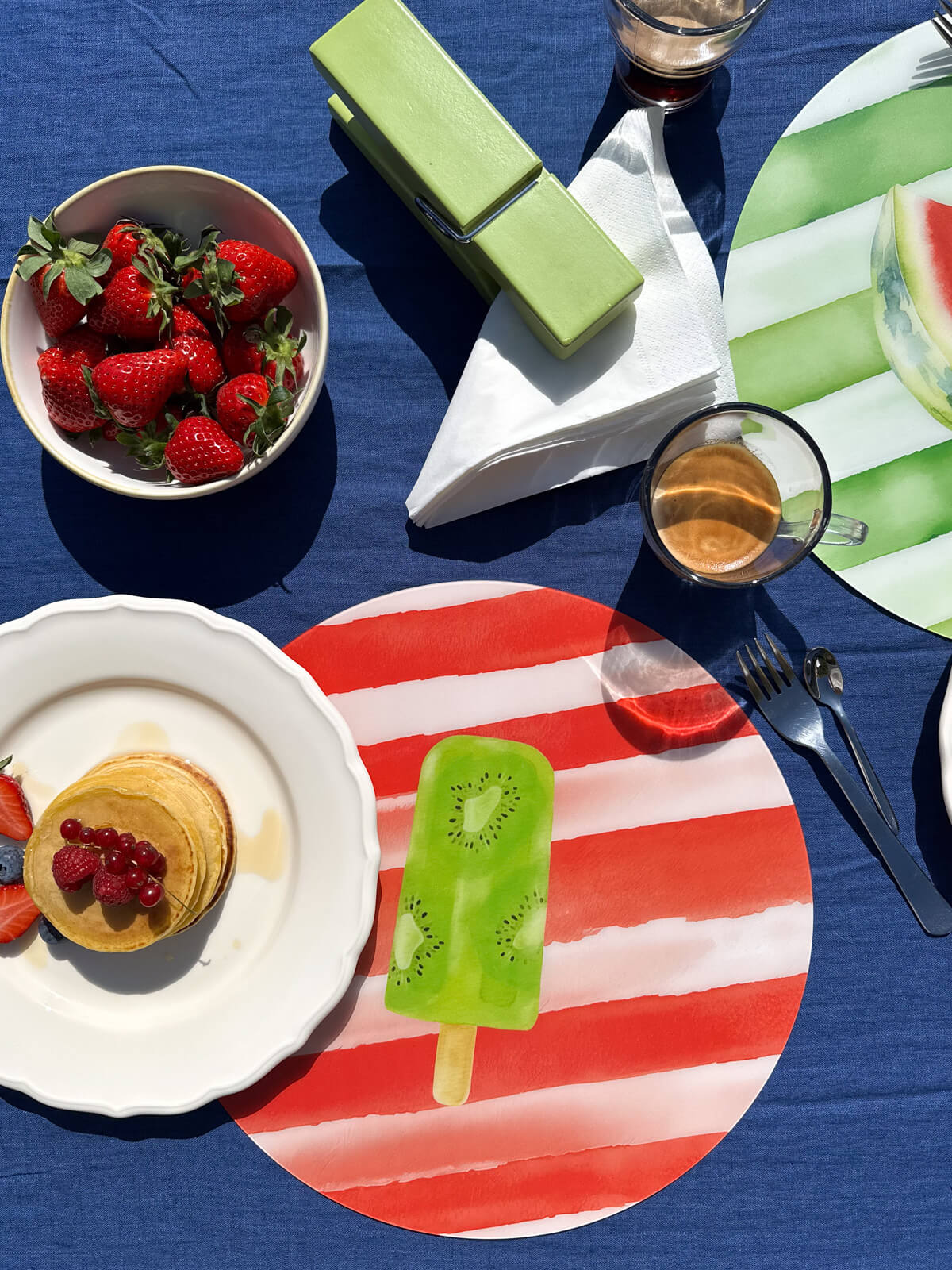 Con un design fresco e giocoso, Il set di 2 tovagliette americane rotonde Ghiaccioli è pensato per portare in tavola l’allegria dell’estate con un tocco divertente e fuori dagli schemi. Fanno parte della collezione di tovagliette americane firmate Monoselection, nate per aggiungere personalità anche alla mise en place più semplice.