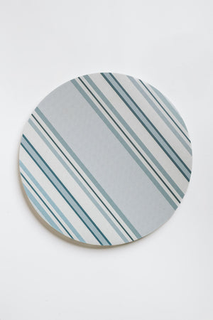 La grafica a righe verticali, nei toni dell’azzurro, del blu carta da zucchero, del bianco e del grigio chiaro, dona alla tavola un ritmo visivo ordinato e rilassante. Il gioco di larghezze e tonalità crea un movimento sottile, perfetto per chi ama i dettagli silenziosi ma capaci di fare la differenza.