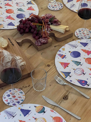 Pratico, lavabile e resistente, il sottopiatto natalizio colorato è pensato per chi ama una tavola in movimento, dove il design incontra la fantasia.