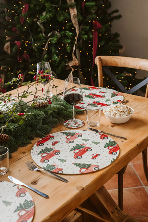 Con il suo spirito festoso e la grafica giocosa, il sottopiatto natalizio TreeRide è pensato per portare in tavola tutta la magia delle feste con un tocco di allegria.