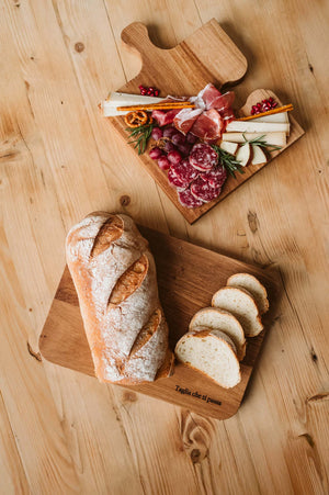 È un tagliere cucina ideale per affettare pane, verdure, frutta o salumi, ma grazie alla frase incisa e al suo stile deciso, si presta anche come tagliere aperitivo da portare direttamente in tavola.