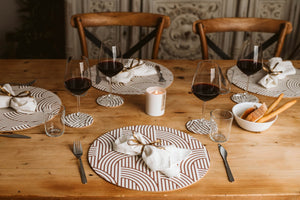 Pratici, durevoli e versatili, sottopiatti e sottobicchieri Twist sono ideali per arredare la tavola in modo armonioso, aggiungendo profondità visiva e un tocco grafico contemporaneo.