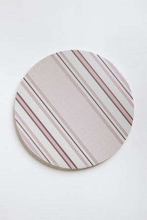 La grafica a righe verticali, nei toni del rosa cipria, malva, lilla e bianco, crea una composizione armoniosa e rilassante. Le righe di diverse larghezze si alternano con ritmo regolare, donando profondità e leggerezza al design.